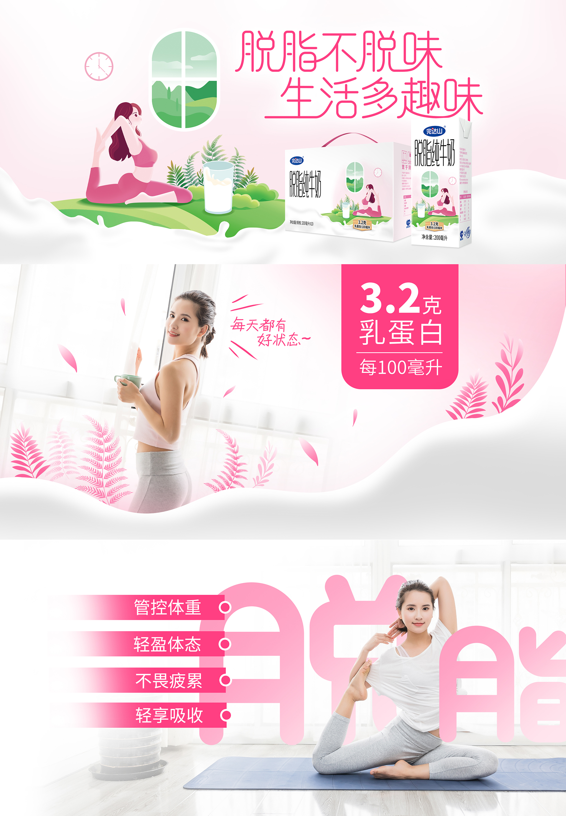 脱脂纯牛奶 200mL苗条装